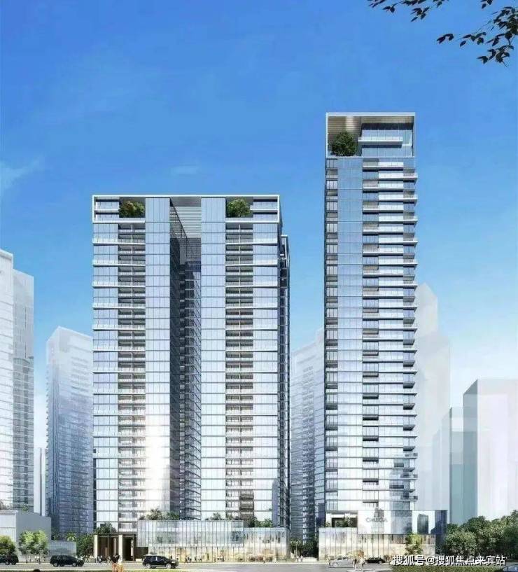 据项目最后采用的中标方案简介中,立方设计将泰安名苑打造为豪宅定位,立面材质选取Low-e中空玻璃和金属铝板,与福田中心区的气质更加吻合,有别于周边住宅社区普通外立面造成的违和感。