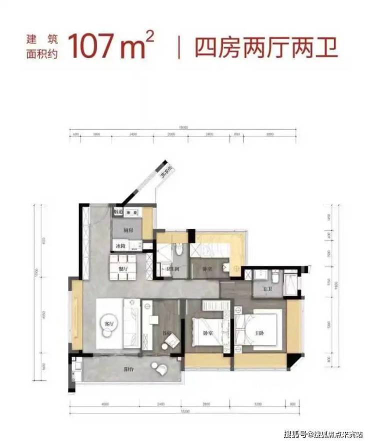 竖厅设计,客厅4米宽,LDKB一体,预留冰箱位,动静分区。主卧17.18㎡,次卧11.2㎡、8.64㎡、7.68㎡(含飘窗)。U型厨房,卫生间干湿分离。得房率79.6%(不含赠送),客厅连10.24m²阳台,东南向。套内85.19m²+赠22.96m²=实用108.15m²,赠后得房率101.08%。