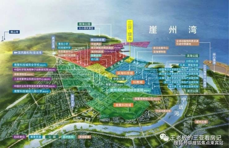 有别于其他湾区,崖州湾不再以传统旅游度假为主,而是要实现三亚产业转型升级,被海南政府定义为海南自由贸易建设的先行引领区。总规划面积26.1平方公里,由“深海科技城、南繁科技城、大学城、全球动植物种质资源中转基地和南山港”五部分构成,作为我省12个先导性项目之一,将以“国际标准、世界眼光、高点定位、三亚特色”为构架,打造开放创新、陆海统筹、产业繁荣、文化自信、绿色节能的先导科技新城。