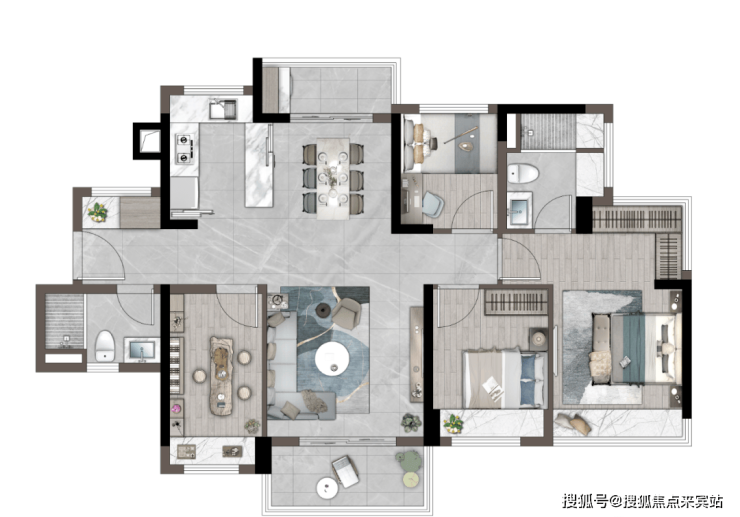 「建筑面积约98㎡丨四房两厅两卫」LDKG一体化阔绰设计南北通透全景双阳台创新可变空间星级主卧臻优套房联动式餐客厅U型大厨房