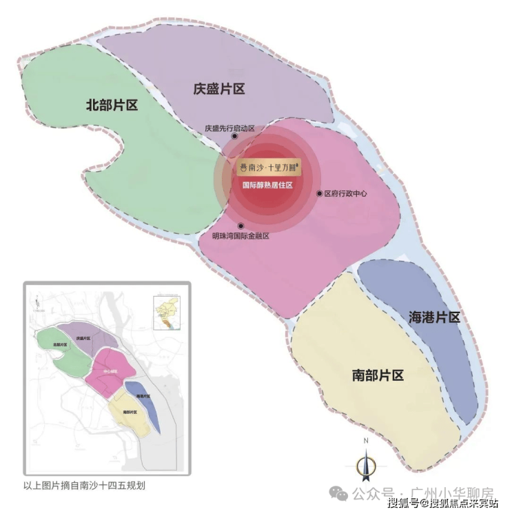 南沙十四五最新规划1中心4片区城市格局,分别为中心城区、庆盛片区、北部片区、南部片区、海港片区。
