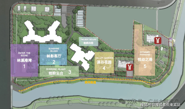 东区为住宅组团,有滨水园林,近地铁和商业,有精英要的奢享及高效;