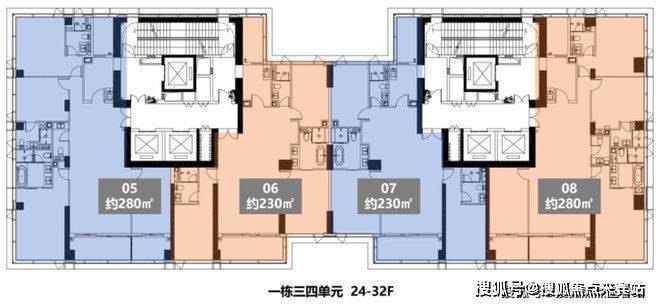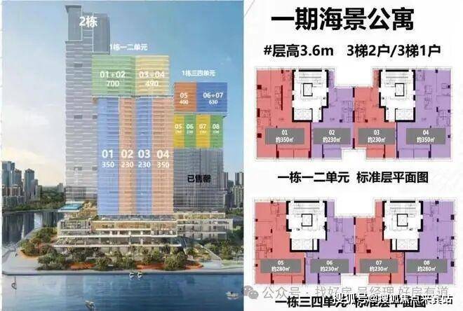 奢华空间:1栋公寓主打230-700㎡大平层,3.6米层高,三梯一户、三梯两户配置,豪装交付标准。