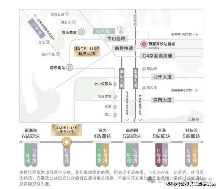 地处南山与宝安交界处,紧邻地铁12号线(在建)同乐南站,步行距离约500米,项目坐拥南山核心区位,毗邻科技园、前海自贸区及留仙洞总部基地,5站可达高新园,辐射粤港澳大湾区核心产业带,具备承接高端人才居住需求的潜力。
