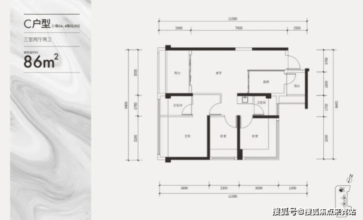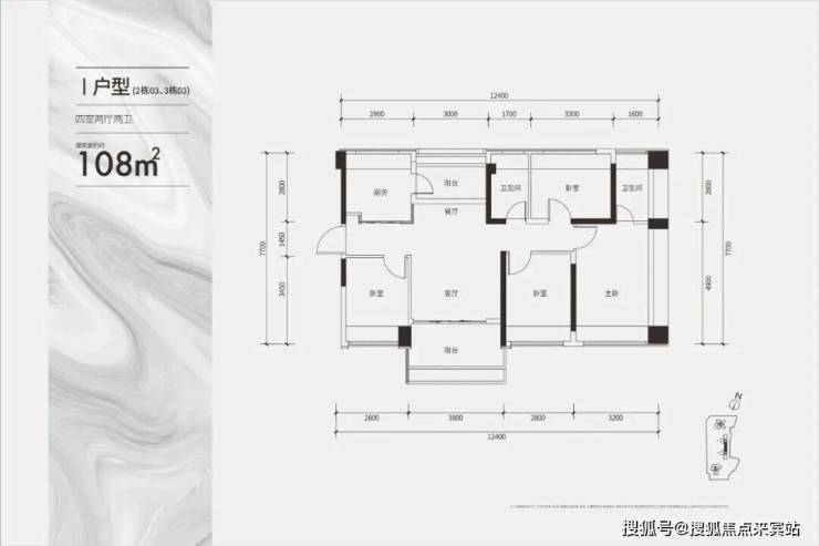 105-12㎡4房2卫743-839万 单价6.3-6.9万