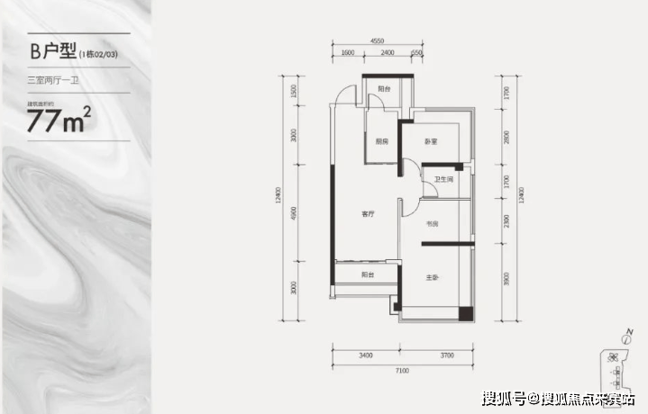 77-81㎡3房1卫513-543万 单价:5.8-7万售罄