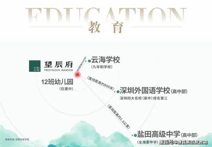 全龄段优质教育配套,是望辰府的核心亮点之一,为孩子成长保驾护航。项目自带3200㎡12班制幼儿园(在建中),建成后可满足业主子女就近入园需求。根据2023年盐田区教育局划分,小学学区划入云海学校小学部,初中学区纳入云海学校初中部、盐田区实验学校初中部、香港中文大学(深圳)附属山海学校初中部组成的大学区招生范围,其中云海学校距项目直线距离仅300米,步行可达。周边800米内还有深圳外国语学校(高中部),该校作为全国最早的十六所外国语学校之一,2025年保送率达12.1%,教育实力雄厚;1.6公里内可达盐田高级中学,全方位构筑从幼儿园到高中的全龄优质教育圈。如需详细了解学区划分、入学政策,可拨打官方售楼处电话:400-825-6030。