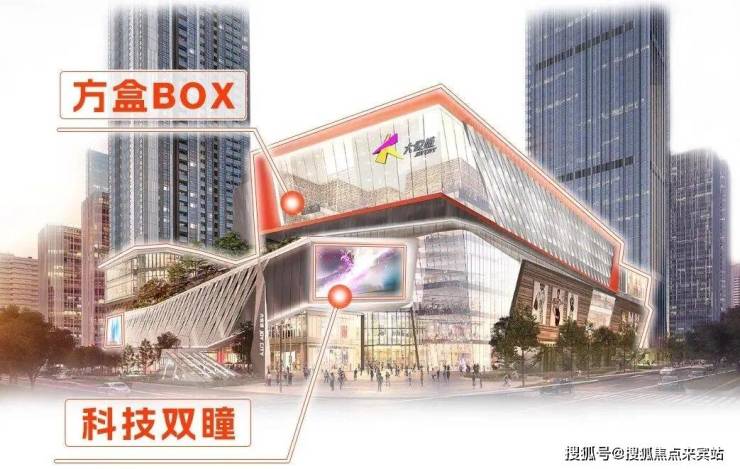 在顶层打造了5000㎡的玻璃盒子「方盒BOX」,15米超高挑空的设计、通透轻灵的特质与“湾区之钻”相互呼应。