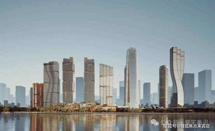 T3和T4是约280米的双子塔超甲级写字楼,幕墙装饰高度291米;T5栋为甲级写字楼,高约250米;T7是超甲级办公楼,约250米;T9为公寓楼,300米。