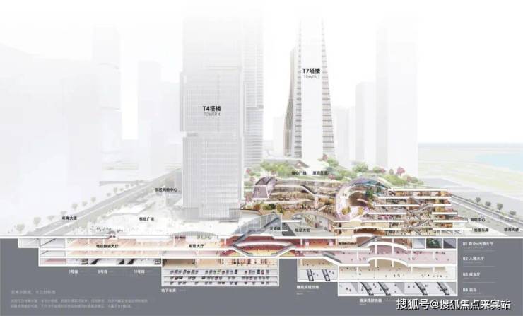 深铁前海国际枢纽中心,作为第四代TOD“产城融合”先锋实践,领先国际TOD案例对“交通+物业”的基础融合,将实现“枢纽功能、产业生态、城市生活”复合赋能。本着“以站聚人、以人促城、以城兴产”的开发理念,项目在占地约20万㎡的土地打造亚洲大型综合交通枢纽之一,串联地铁1/5/11号线、穗莞深城际(建设中)、港深西部铁路(规划中)等5条轨道线路,在此之上汇聚商务公寓、国际总部办公、奢华酒店、时尚商业、国际枢纽、公园广场六大业态于一体,打造天际未来之城、跨境枢纽之城、TOD站城大都会。