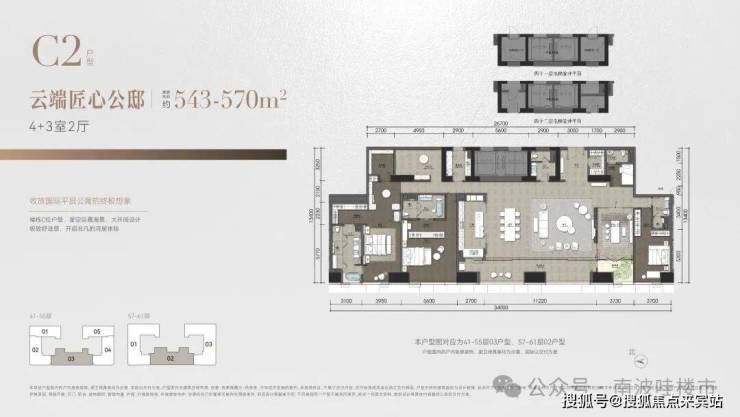 ◎建面约543~570㎡ 4+3室2厅,云端匠心公邸