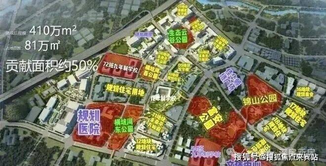 鸿荣源观城总占地面积约68万㎡,其中有40万㎡属于鸿荣源,包含住宅、商业、产业,还有约28万㎡由鸿荣源代建移交政府的公共配套,包含绿化、水系、公园、学校、医院、养老院、文体设施等。