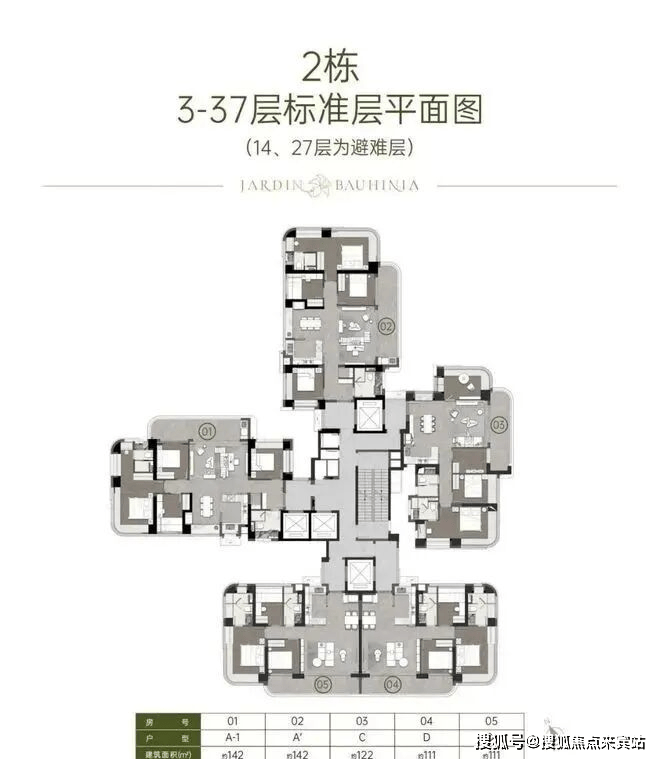 建面约142㎡南北方厅 阔景四房;