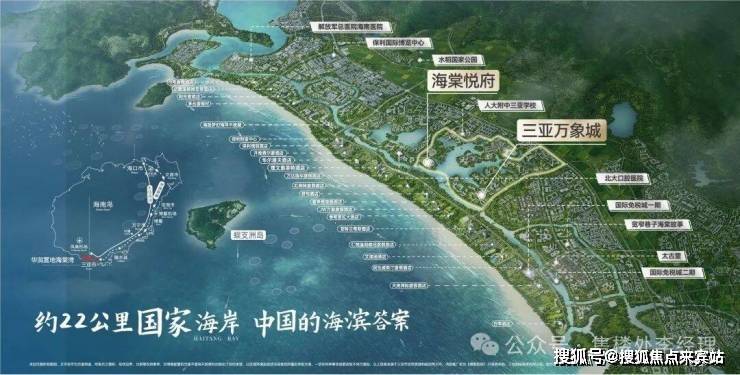 项目坐落于国家级海岸湾区,内河温柔环绕半岛,三面公园环抱,宛如一座热带海岸的内河度假仙境。周边艾迪逊酒店、亚特兰蒂斯酒店等高端酒店林立,共同构筑繁华的海棠生活圈,为业主提供诗意栖居的自然蓝本。
