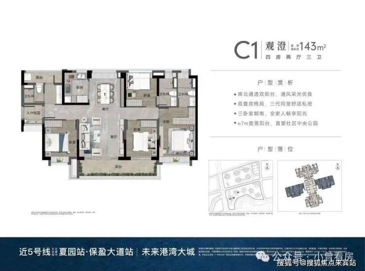 约123㎡南向4房,约143㎡南向4房,约93㎡北向3房。