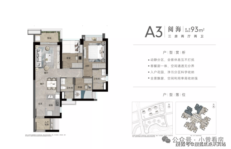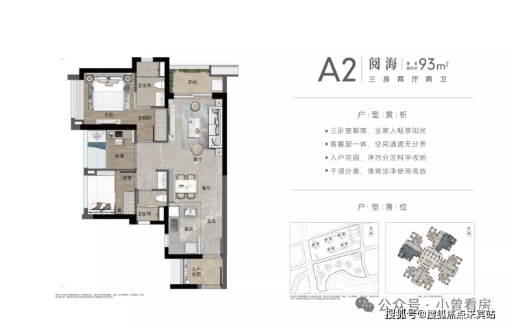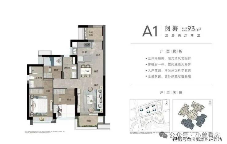 约93㎡南向3房,约93㎡北向3房。