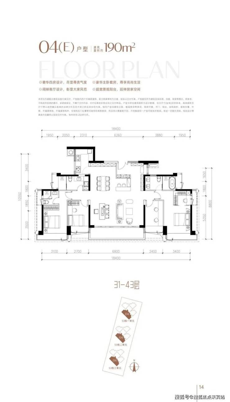 户型亮点:塔尖圈层专属户型,稀缺性极强;16.8米超大面宽+空中花园,打造极致居住体验;山海双景资源独一无二,彰显顶豪身份;灵活可变空间适配多元生活需求,无论是家庭居住还是高端社交均能满足。
