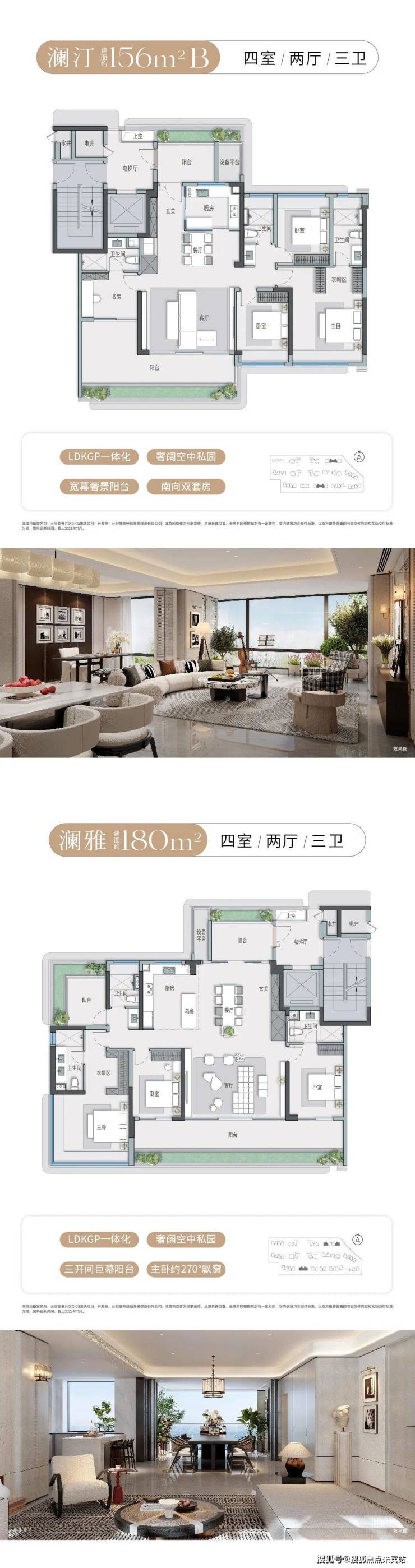 项目是三亚首发类四代宅的创新户型,在产品设计有不少亮点,比如三阳台设计,入户庭院花园打造;再比如全景舱设计,做到U型三面采光,比传统L型多一个景观面。