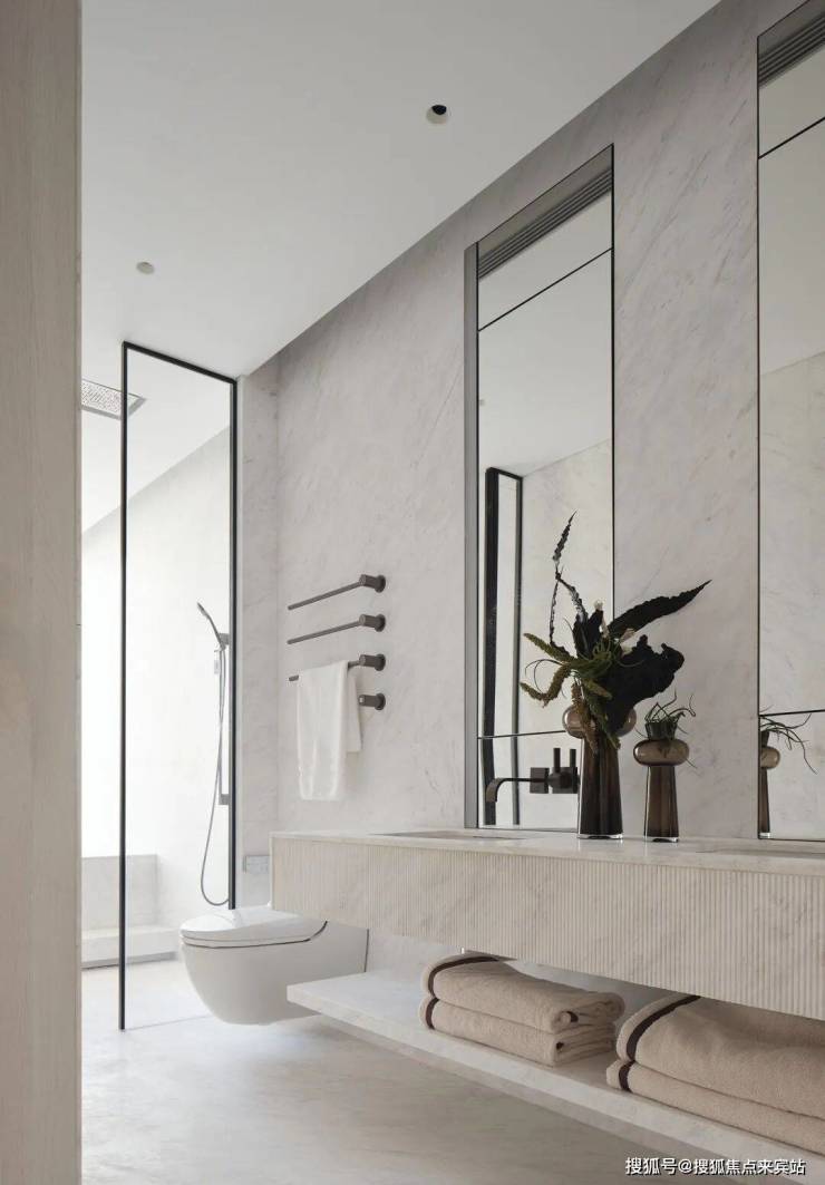 延续素净雅致的空间主调,临窗minibar和浴室共享迷人的都市山海景观,营造放松的度假式体验。整个卧室的色调柔和而统一,共生、圆融共同造就东方梦境般的生活。