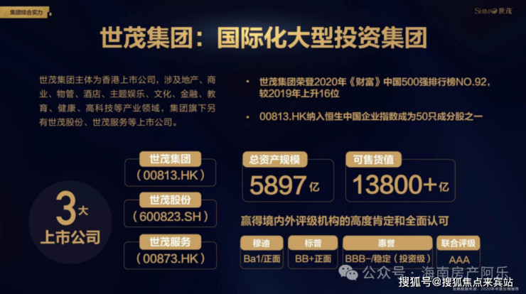 世茂集团是一家国际化、综合性大的型投资集团,经过三十多年的发展,集团布局全国100多个核心发展城市,涉及地产、商业、物管、酒店、主题娱乐、文化、金融、教育、健康、高科技等产业领域,形成了多元化业务并举的“可持续发展生态圈”。