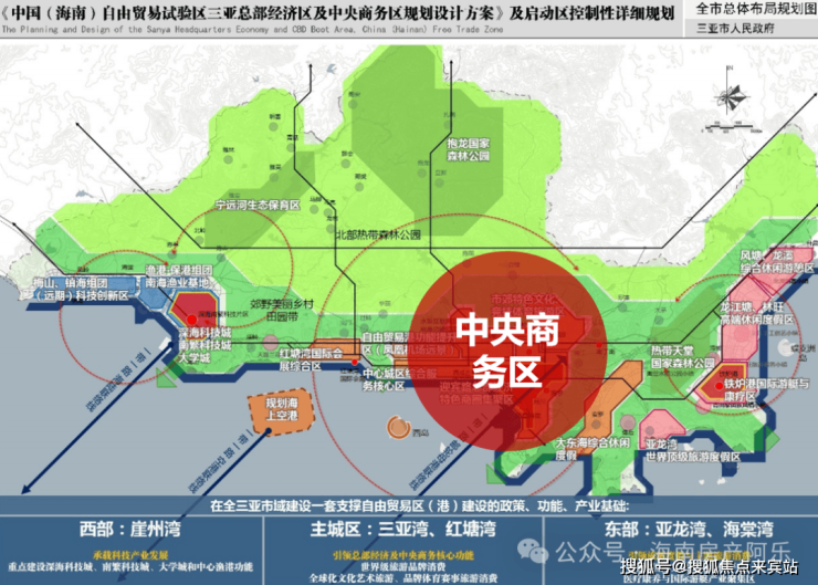 中央商务区雄踞三亚核心位置,同享城市核心位置、城市CBD、自贸港重点产业园区三大核心要素,规划自贸港总部经济及中央商务核心功能,奠定中国对外经贸门户地位。