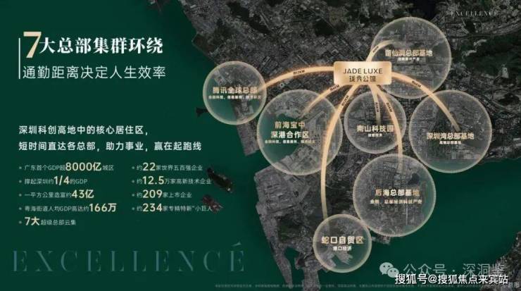 🎯三湾七总部 “黄金”通勤圈约3公里科技园、留仙洞总部基地;约4公里前海宝中深港合作区;约5公里后海金融总部基地;约6公里深圳湾超级总部基地;约12公里蛇口、腾讯全球总部⁽²⁾。