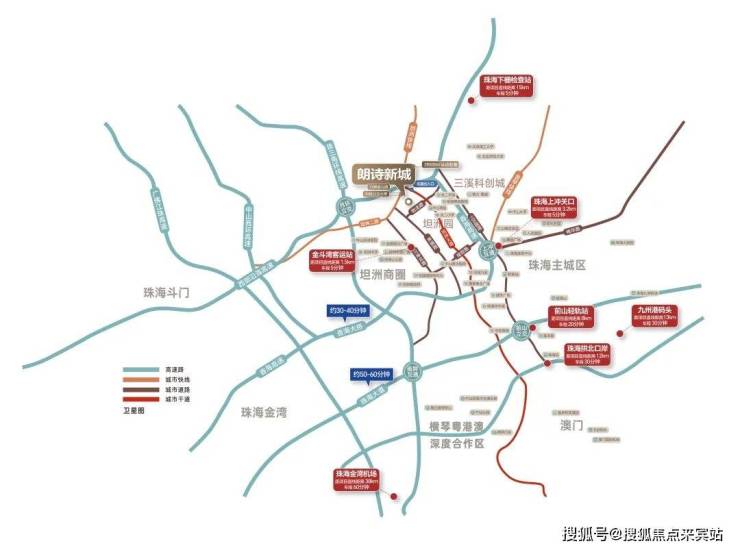 •商业配套:山姆商圈(山姆会员店、奥园广场,10分钟)、坦洲商圈(皇爵假日广场、优越城购物中心,15分钟)、南湾商圈(珠海环宇城、诚丰广场、华发商都,15分钟)、富华里商圈(富华里、玖洲道、摩尔广场,20分钟)