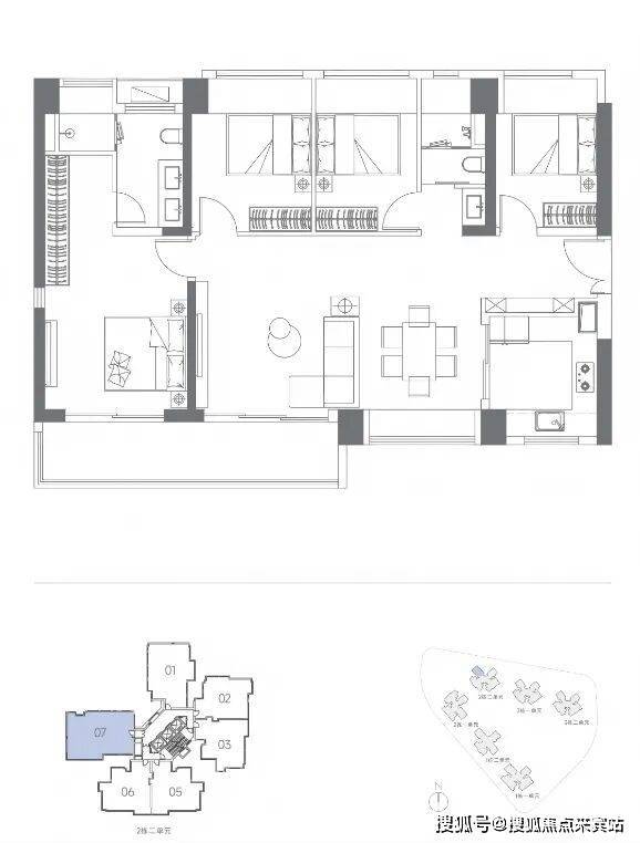 合正方洲二期・瀚府:坐北朝南、依河而建,是项目综合体中环境配套更优的组团。社区占地约 3 万㎡,总建面约 27.4 万㎡,容积率 6.6,规划约 1777 个车位,车位比达 1:1.17,优于同类新盘。住宅约 17 万㎡,含 6 栋共 1508 户,户型为 3 梯 5 户 / 3 梯 6 户设计;配建 18 班幼儿园及约 1.2 万㎡集中商业。