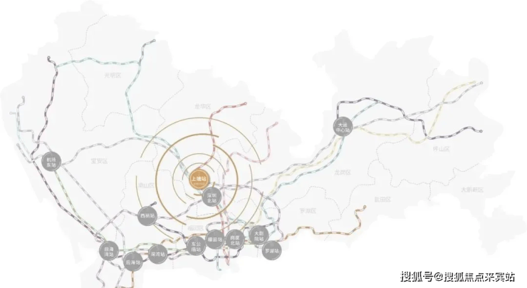 深圳都会枢纽的1/13 ,三地铁线交汇(含在建)