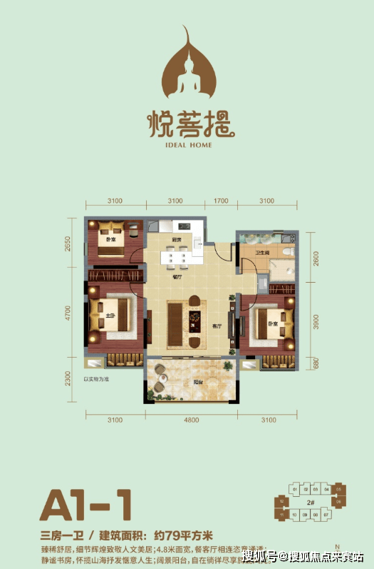 主力产品:59~61㎡两房 78.86~81.25㎡三房