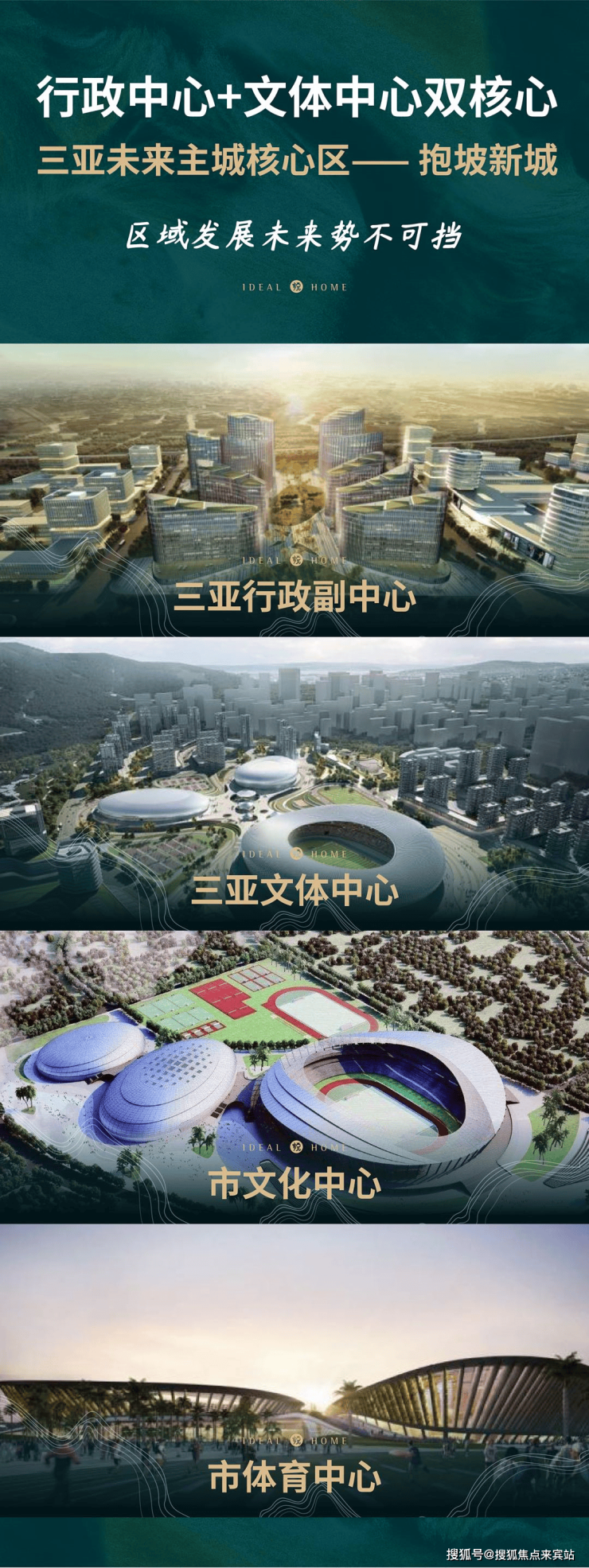 ●项目所属的抱坡新城板块,处于“一核”所规划的三亚总部经济区内,规划为融合文化、体育、行政中心的城市综合服务核心区,以文化艺术、运动康乐、购物休闲和深养田居四大组团,打造花园办公、文化体育等创意产业,未来将成为三亚的高水平城市生活服务新城。