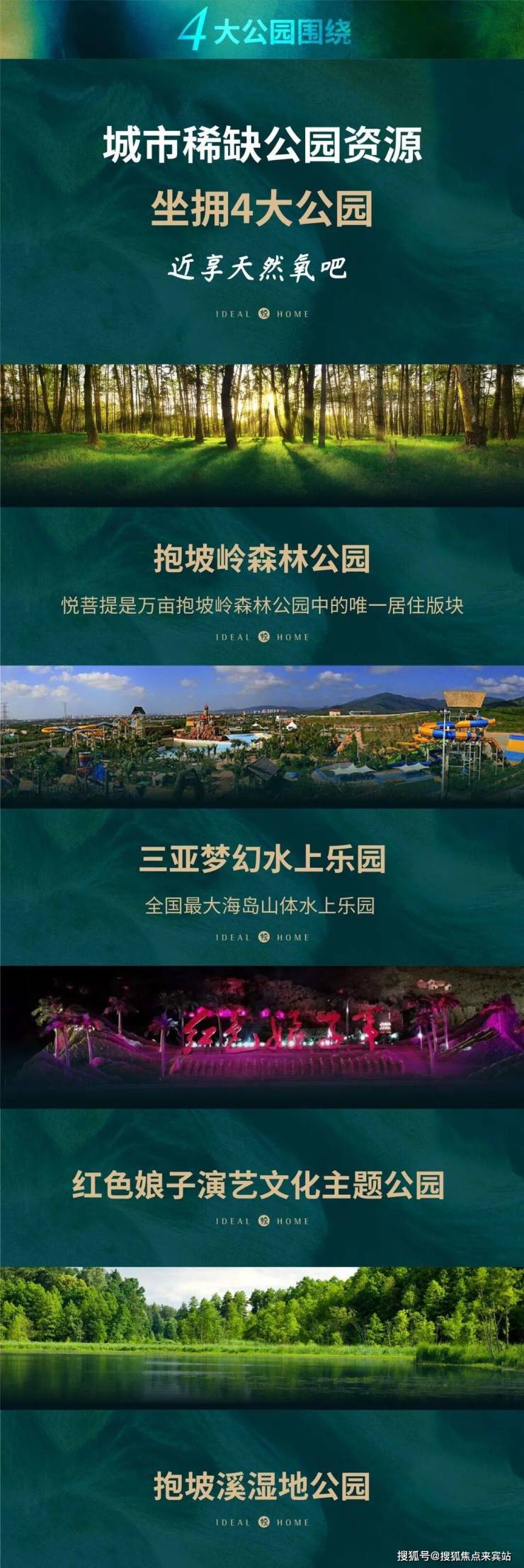 抱坡岭森林公园、三亚梦幻水上乐园、红色娘子军演艺公园和抱坡溪湿地公园。