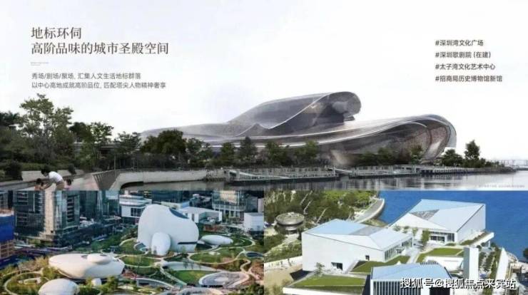 向后则是高阶品位的城市艺术殿堂:除了已经开放的太子湾文化艺术中心、招商局历史博物馆新馆、深圳湾文化广场,还有在建的深圳歌剧院,以中心高地成就高阶品位,匹配塔尖人物的精神奢享。