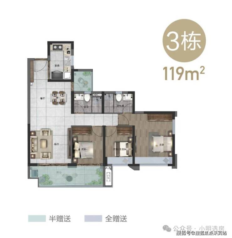【约119m2三房户型】