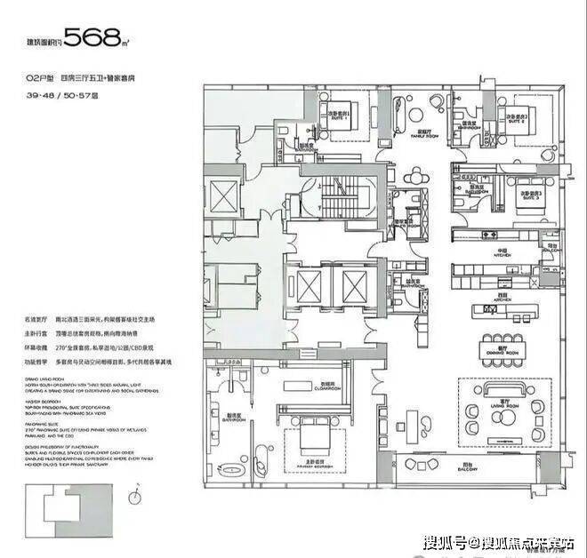 而项目计容建筑面积 27.7 万㎡,由 4 栋超高层公寓、2 栋高层办公楼及低密度业态组成综合体,全盘以大户型为主力。