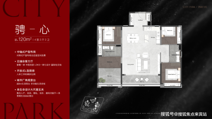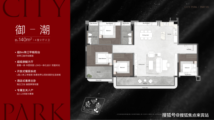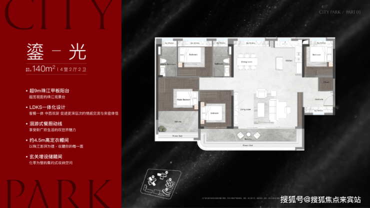 该栋为25层高,两梯三户设计,只有两个面积段,120㎡和140㎡,户型做得不错,在景观展现上用了功,极大程度去放大观江面,比方说超宽阳台、L型主卧转角飘窗、客厅预留观景飘窗等等,主打改善户型,2025年9月整体交房。