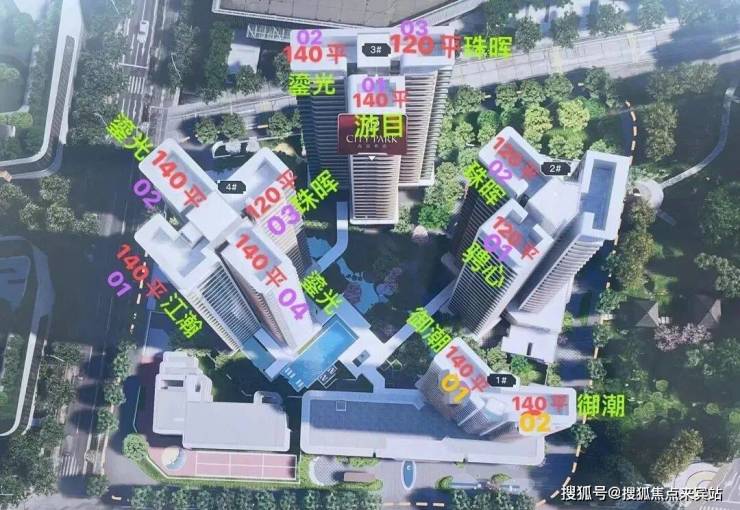 西派粤府采用围合式布局,前后有高度错位,能保障大部分户型能够看到旁边的江景。