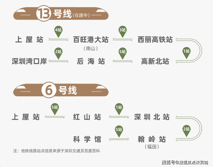 项目约直线距离400米抵达6号线、13号线(在建中)上屋站,6号线8站福田(翰岭站),13号线(建设中)4站南山、8站科技园(高新北站)。