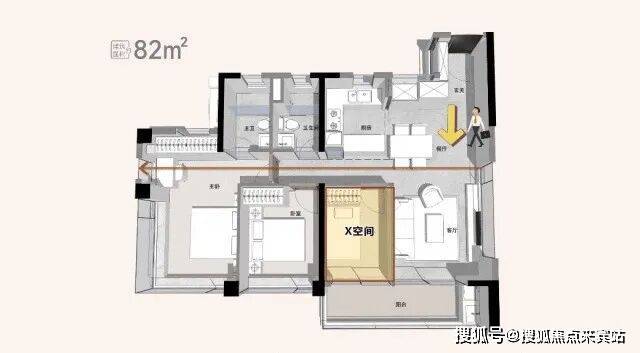 首推建面约84-107㎡全南向超新规高使用率三/四空间