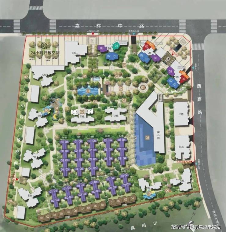8大园林分区:形象景观主、次入口;都会会客厅;全龄泳池景观区;高层宅间社交空间;私享闲庭观山;启蒙乐园幼儿园;24小时公共空间;