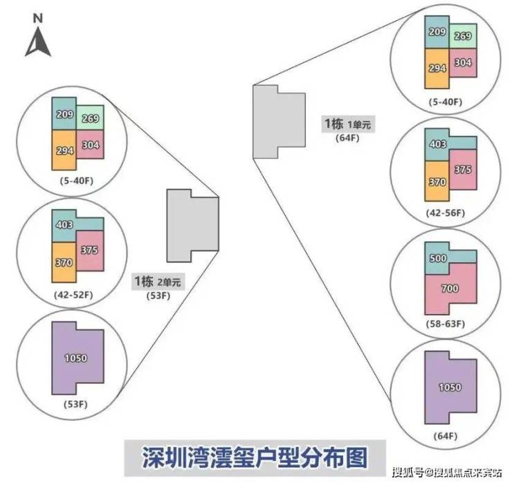 本次销售的是位于北区地块的1栋的两个单元,一共348套,面积为209-1149㎡的四房户型。(如上图)