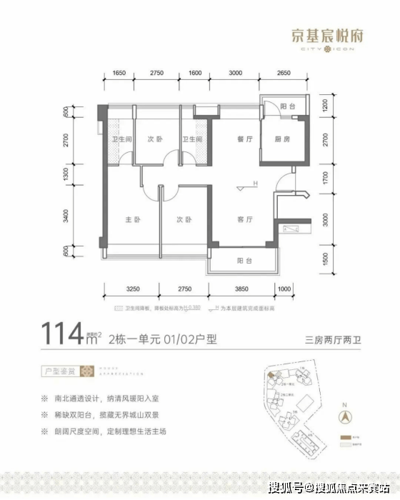 →归心生活: 建面约110-133㎡城山双景,南北通透、稀缺双阳台,全系品牌精装,非凡品质臻享