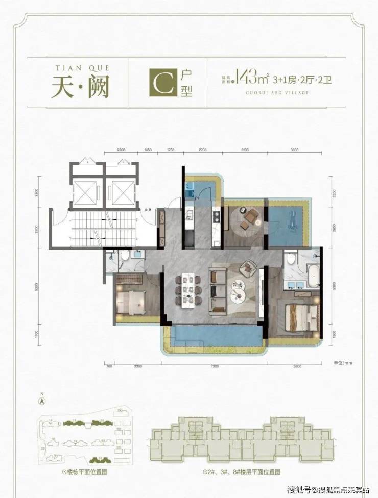 C户型: 建面约143㎡ 3+1房2厅2卫