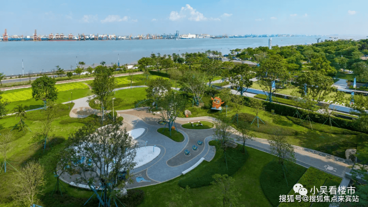 保利领秀海自带的约12万㎡滨海园林,已经实景呈现,业主下楼,就是一环七景的海岛园林,入口广场、林间小径、景观廊架、绿荫草地,一路铺展开来。