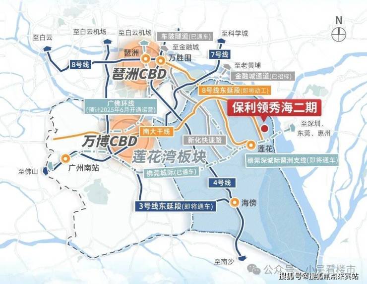 目前周边有莲花山站{距项目4公里左右},设有三条城轨:佛莞{3站万博,4站广州南站}、佛莞深{2站到大学城,3站到琶洲}以及广中珠澳城轨{规划中}。