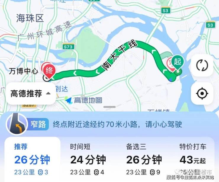 如果你意向这个楼盘,买个车通勤是必备的,不管是去琶洲还是万博,这个上下班通勤时间都是可以接受的{自驾}