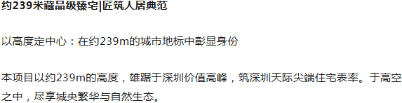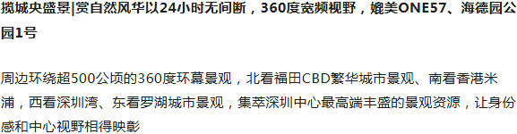 目前整个福田片区土地稀缺,待开发净土不足5%,并且近期无任何居住用地土地招拍挂,作为福田区中心地标性住宅,在239米的城央高处,以至臻至诚的匠心之作,迭新中新人居新时代