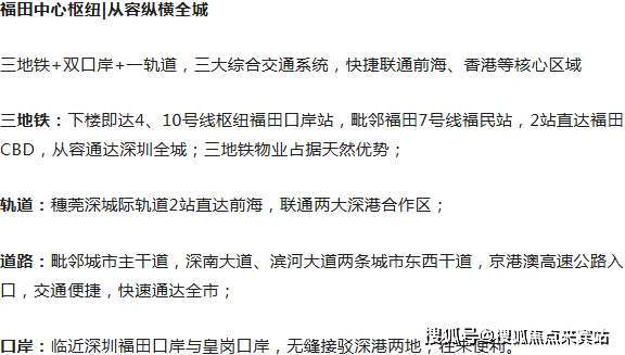 地铁:地铁4号线的交汇站福田口岸站(距离约380米)地铁7号线福民站