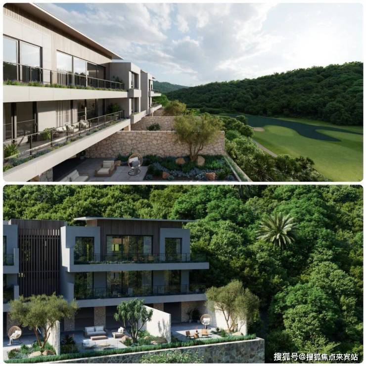真正能够直面高尔夫果岭景观的在售产品是阿那亚的叠墅。以山谷为经,用山坡作纬,纵横勾勒,每一栋都根据地势高差,择取最优质的景观面。