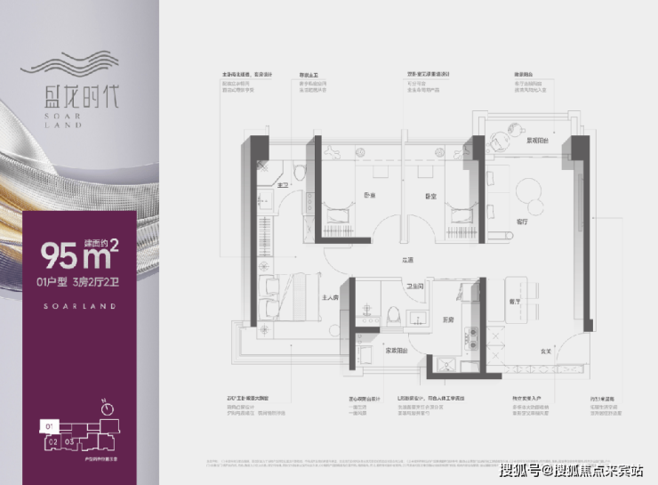【盛龙时代】定位是面向城市精英的乐活、时尚的精品社区。可售房源仅约110套。本次推售的是市场臻稀的创新产品:约99㎡3+1房2卫,以及约95㎡三房2卫